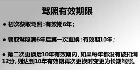 如果在这6年里,每个记分周期都没有扣满12分,到体检换证的时候就可以换成有效期10年的;如果在之后的10年里,同样是每个记分周期未扣满12分,就可以体检换证成终身有效的。