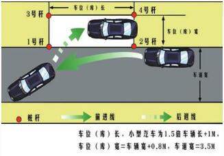 停车时不得碰、擦库位桩杆。在车轮不轧、碰车道边线、库位边线的情况下,通过一进一退的方式,将车移入库中,并且停车要保持车正、轮直。