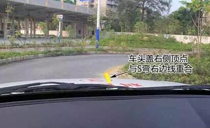 2、在进入S弯时,要注意车头的位置,尽量使车辆外前轮靠近弯道右侧边线行驶,用1挡半联动前进,前进过程中不能停车。前进过程中,还应观察左右后视镜,使车辆沿S路行驶。