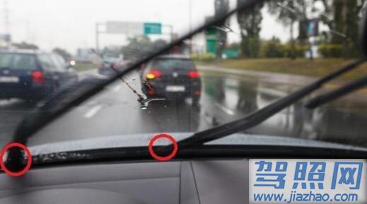 第三点老司机告诉你怎么看车轮和路上物品的距离。通过左轮的位置,我们就知道左轮会从哪里过去,可以让我们尽可能的不压实线还有一些我们在路上不想压倒的东西。当我们的视线通过左雨刮器突起的结点挡住路上物品的时候,汽车的左轮应该会在物品压过去。通过右轮的位置,当我们视线通过右雨刮器和物品相交时,轮胎也是会在物品压过去。