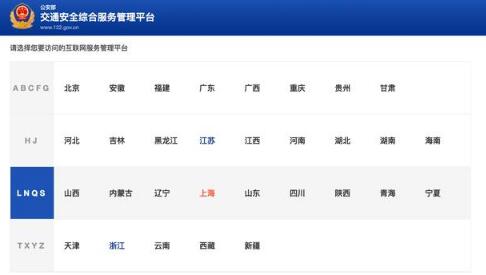 2、找到对应的省市。(驾照是在哪里考的选择哪个省份)