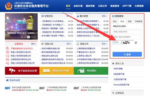 3、可以看到右侧信息查询中,选择记分,输入18位驾驶证号。(也就是身份证号)和输入12位档案编号,在加上验证码。即可查询驾驶证扣分情况。