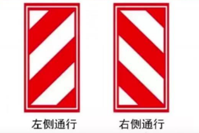 这个标志一般会在道路施工或事故堵住道路时可见,这个只要记住线条是撇还是那,撇就是左侧通行,那就是右侧通行。