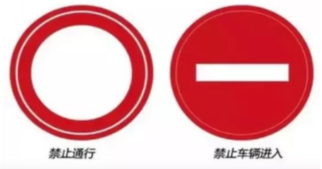圆圈里面有一道杠就是禁止驶入,一般多用于单行道,准出不准入,打圆套小圆就是禁止通行。