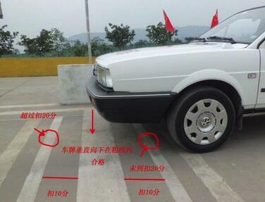2、车辆停止后,汽车前保险杆或者摩托车前轴未定于桩杆线上,且前后不超出50厘米,扣20;