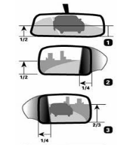 右侧后视镜调整要领:把水平线置于后视镜的2/3位置,然后再把车身的边缘调到占据镜面影像的1/4。