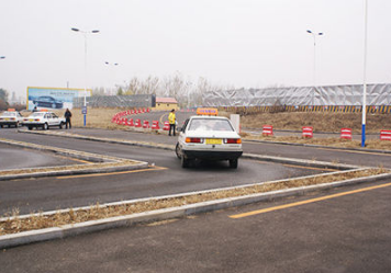 2.用低速档通过,途中要能正确估计内后轮的轨迹,不允许压内直角突起点,边线,不得停车,倒车。