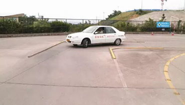 四、当左后轮越过内直角突出点时,开始逐渐向右回方向驶出弯道;
