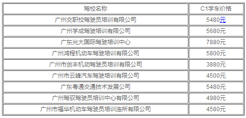 广州驾校收费标准