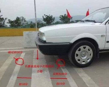3)车辆停止后,汽车前保险杠未定于桩杆线上,且前后不超出50cm的,扣10分;