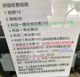 驾校收费C1:6290元(上报到宁波银行资金监管)