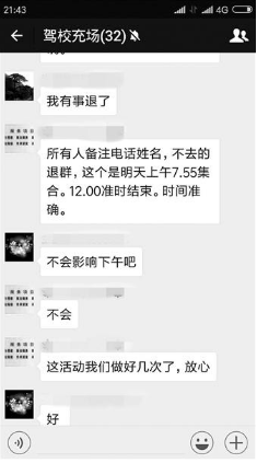 组织者在“驾校充场”群里发布替考通知