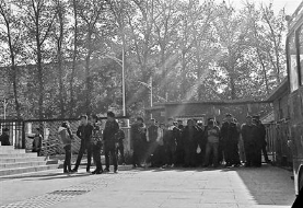 参加替考的“充场人”在地铁口集合