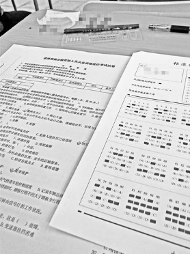 约9点35分,考试正式开始。北青报记者看到,笔试试卷共有40道选择题、40道判断题和10道多选题。还未等记者浏览完题目,一位工作人员开始通过麦克风读题,与此同时,公布答案。“大家的目的都是想顺利拿到这个证,只要你们配合,我们就尽量让这件事顺利进行。”