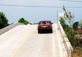 该坡起了。首先要打左灯。起步时方法是"两停一动"。右脚先给油使发动机转速到1500~2000转(转速在2k以下都不算轰车,稍微 过点儿也没事儿),然后右脚在这个位置上保持不动(1停);接着左脚抬离合到接触点位置,车头微扬,此时左脚保持不动(2停);然后再松手刹(1动),加油行车。车尾一过坡就加上2档。