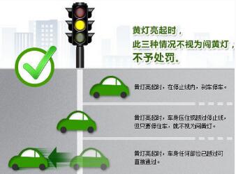 (二)黄灯亮时,已越过停止线的车辆可以继续通行;