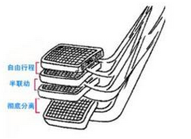 2、离合器配合脚刹起步。离合器和脚刹都踩到底,起步的时候,慢慢抬起离合,这时候按刚才说的方法,脚跟稳住不动,脚掌轻轻抬起。看仪表盘,指针有轻微跳动(或发动机有轰鸣声)就稳住。接着又慢慢抬起一点,看到指针跳动大(或发动机声音变大)稳住第二次,立刻把脚刹放掉。等车子向前走3秒后就可以完全放开离合了。