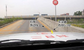 保持缓慢匀速向上爬坡,定点的时候,注意车头与定点的距离。当车右前角与定点标示快水平一线的时候,就踩刹车停住(这个定点的位置,也可以通过杆儿、车收音机部位那个高出的右上角及人眼视线三点一线来确定)。停车后马上拉手刹挂空挡。