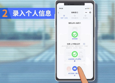 第二步:录入个人信息。首先拍摄上传人脸照片,其次准备个人身份证件,拍摄并上传相关证件照片(正反两面)。