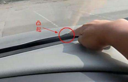 第4种:用的不是很多,但还是比较好找的一个点位,就是雨刷器的缺口与边线重合前行。在科目三中靠边停车中也可以用这个方法停车。