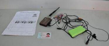 监考人员对这名女子进行了检查,发现女子耳道内有微型耳机,手提包内还有发射器。在这些作弊证据面前,女子羞愧地低下了头。