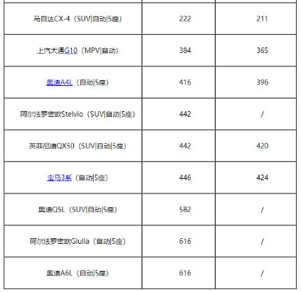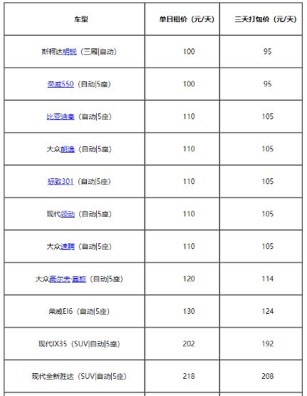 租车价格:一嗨租车的租赁价格在行业中对比,可以说是非常优惠的,租车价格在同行业中处于中等水平。大众朗逸102元/天、大众速腾时尚版-106元/天、荣威550混动-130元/天、高尔夫·嘉旅-132元/天、奥迪A4L-378元/天、宝马3系-398元/天、宝马5系-548元/天。
