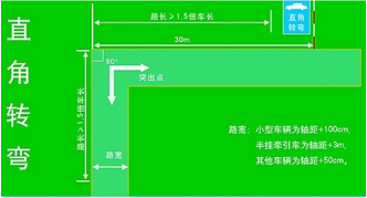2. 直角转弯首先要正车身,如果车身是斜着的,你转弯的时候一定会压到边沿上的线,这样考试就会不通过,平时要多练习,观察啥时候车身正