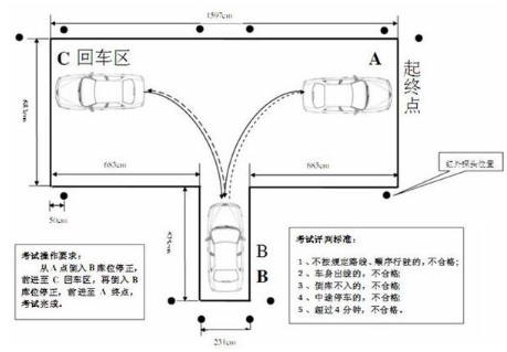 1、上车后,调整坐椅、三个后视镜,安全带(有感应方块的一面朝外),打左转向灯,自己将车从库外停车区开到车库右侧,距左边线1.5-1.8米,对准前 方自己找好的固定点前行,直至车前轮驶过边线(线上有感应器,压到或压过才能感应到)。挂倒档,放离合器,轻微震动时,松刹车