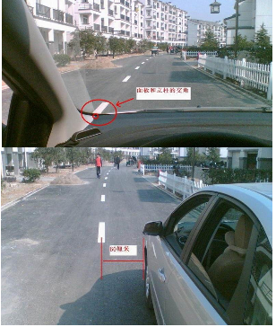 判断左轮会从什么地方压过,可以避免轮胎压到实线,或者规避路上的坑洞石块等。当我们的视线通过左雨刮器突起的结点和地面上的物体重合时,我们的左轮在行进时就会在该物体处压过。