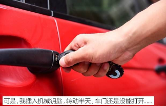 开车门:很多带遥控钥匙的车辆,因为行驶公里数比较长,电瓶老化等原因,某一天突然发现车辆遥控钥匙打不开车门了,而门把手上没有钥匙孔,怎么办?其实车上是有钥匙孔的,就在拉手后侧的小盖里,只要用钥匙在小盖下方轻轻撬动,小盖就会掉落,钥匙孔便出现了。