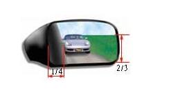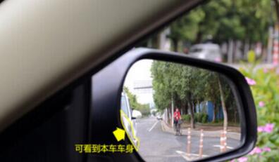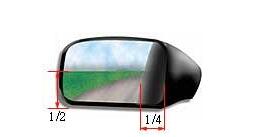 右侧后视镜调整要领:把水平线置于后视镜的2/3位置,然后再把车身的边缘调到占据镜面影像的1/4。