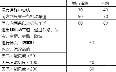 3.天气+能见度低于50米,时速不超过20,并尽快驶离