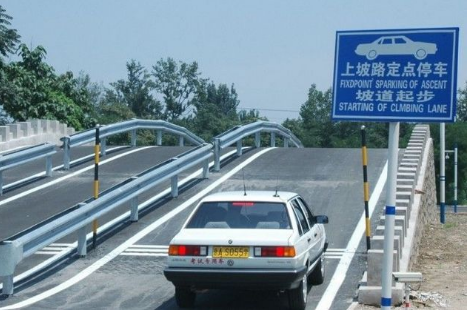 第七种方法:这个方法可以说是偷懒一种方法,首先要看自己的考场或者训练场是不是在上坡的时候有黑色车印。只要保持自己的车轮在黑色的车印上面就可以了,或者保持人在白色中间也是可以。