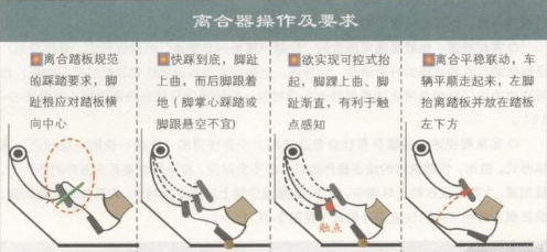 1、脚根贴地,松离合的时候脚根跟着后移。