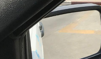 比如看左后视镜中,如图所示,左侧车身与边线距离过宽,所以应该向左侧打一点方向,可以一点一点打,当车身与边线平行时,回正方向即可。反之亦然。