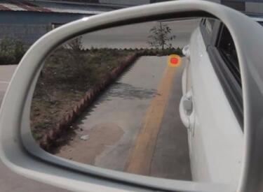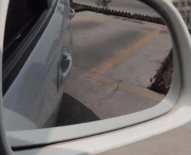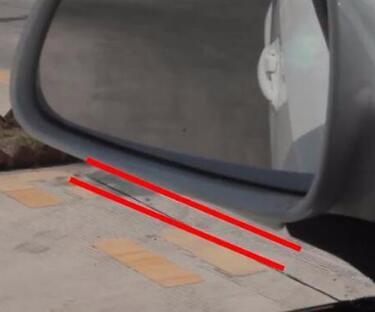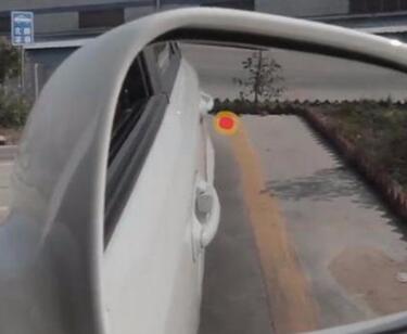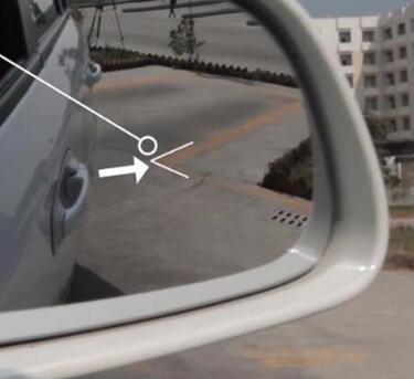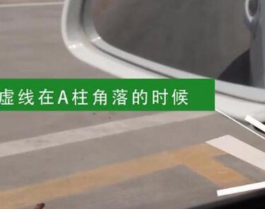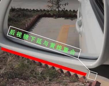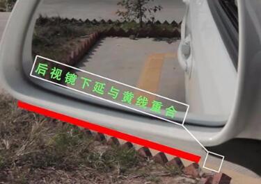 7、当左侧后视镜下沿与前面黄线重合的时候,停车;