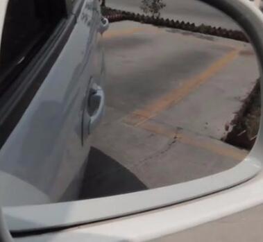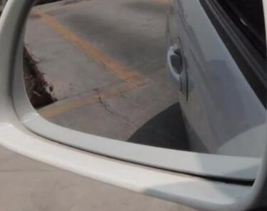 2、观察左侧后视镜,当后视镜下沿与虚线重合的时候,迅速向右打死方向;