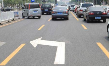 2、观察后方车辆情况,确保安全、开灯三秒后变道至左转弯车道上(考试车道为最里道)