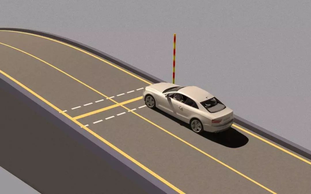 2、车辆停止后,汽车前保险杠未定于桩杆线上,且前后不超出50cm,扣10分