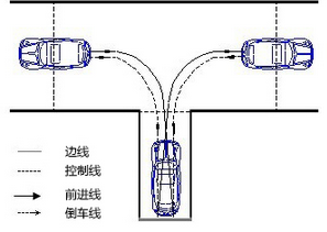 2、开始顺倒。开右转向灯,挂倒档,身子向右后方看,边倒车边看,观察右后窗的立柱跟车位右线的关系,具体位置跟身高和座位的高度有关。我身高163,是看到车位右线快到右后窗的立柱时赶紧打方向盘,向右打到底。这时候眼睛看右后视镜,边倒车边看车身与车位右边线的距离,宽度在30cm左右。若是窄了,则在车身摆正前及时将方向盘先左回一圈左右(若是很窄则一圈多,若是窄一点点,则半圈到一圈),观察车身与车位右边线的距离待宽度合适后再向右转方向盘(即向右打死),待车身摆正后,再将方向盘向左转,将方向盘摆正开始后退。这时候眼睛开始观察左后视镜,观察车身与车位左边线的距离,及时调整。待车身完全进入车位后停车(怎么看停车点,我总是看不好,每个场地都不太一样,据说考试时我就差一点点没进去)。