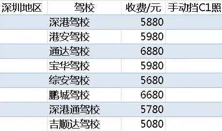 深圳驾校价格一览表2024,深圳驾校收费标准