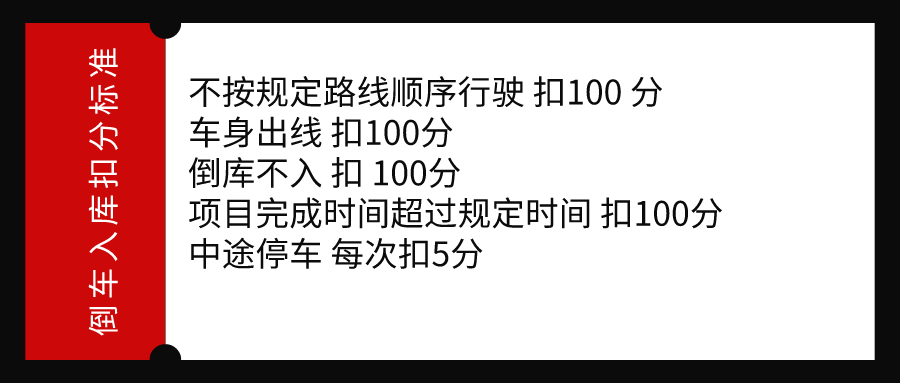 下图是科目二倒车入库的评分标准,在考试过程中,熄火压线都是扣分项目。