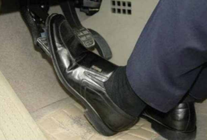 以脚跟为支点,将左脚前脚掌放在离合踏板的正中央,以脚跟为支点上下移动。