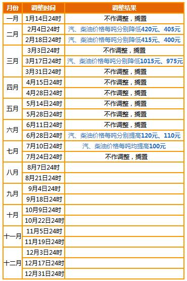 2020年油价调整日期表(每月更新)