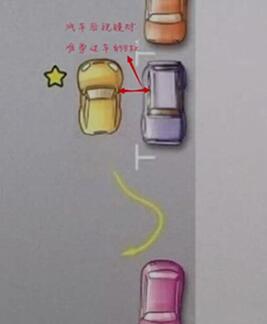 2、使自己车的外后视镜和旁边的第一辆车的B柱对齐