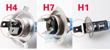 H1是一个接线端子,利用灯泡壳体接地,H4是三个接线端子是双灯丝远近光的,H7是2个接线端子
