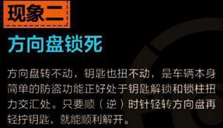 来源:驾照吧 发布:2016-04-07您是否会遇到方向盘转不动、钥匙也扭不动、后备箱打不开、转向助力失灵、自动挡车转钥匙不能启动……这些情况你遇到过吗?遇到这种情况如何处理呢?下面就跟着驾照网小编一起往下看吧,相信会对你有所帮助。