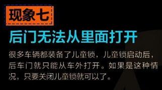 遇到后门无法从车内打开时,检查一下后车门有无儿童锁,并打开。