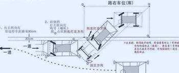 首先,以右轮离库外侧线三十公分,来控制距离,到点位停车。向右打足方向,我亲眼看到有学员一紧张左右不分,记住倒车关键看车屁股,屁股往哪里去,方向盘往哪里打!观察左后视镜,此时速度要慢,看到红外探头,回正方向,此时应该车尾正好与库底成45度,(如果打晚了,那下一步就要提前)然后探出脑袋,看左反光镜中左后轮正中间压库外边线,向左打足方向。(如果刚才回正晚了,此时左后轮一压线就要打足);此期间牢记打方向时必须要压住离合不能太快,详见倒车入库时要点。最后,车头与库水平线平行,或者反光镜中车身与库边线平行,停车,记住不用回正!