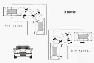 技巧:一般都是转左直角弯,右转方法类似。左转车靠右边走,离开右边线30公分,方法见第一章,有些考场有点位,听教练的;当左车反光镜过转弯左边线,迅速左打死,老规矩,方向快,速度慢,然后车正回轮。